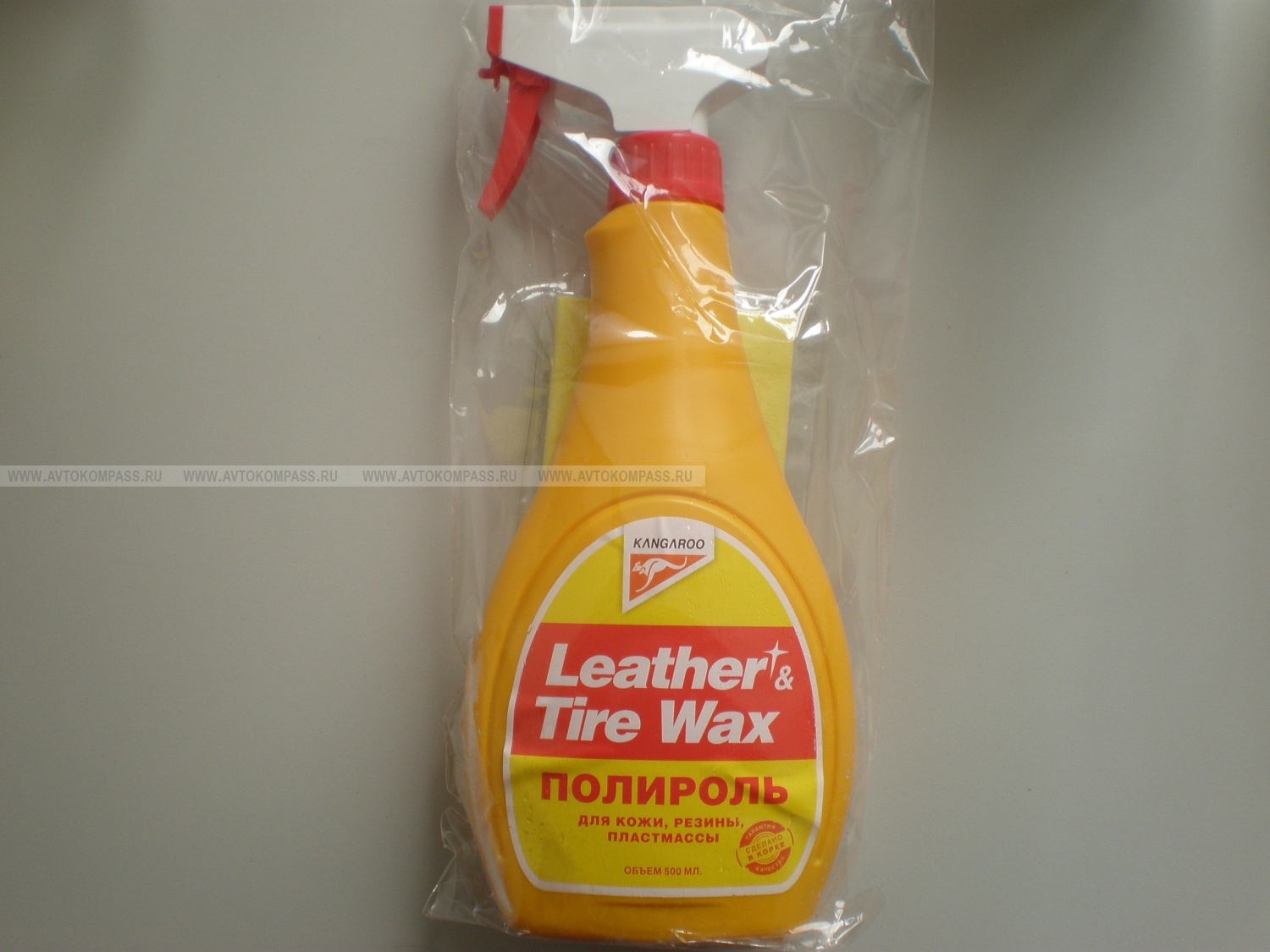 Полироль пластика, кожи, резины "Leather" 500мл KANGAROO ГЛЯНЦЕВАЯ