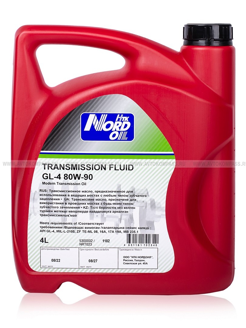 Масло трансмис. NORD OIL 80w90 4л GL-4